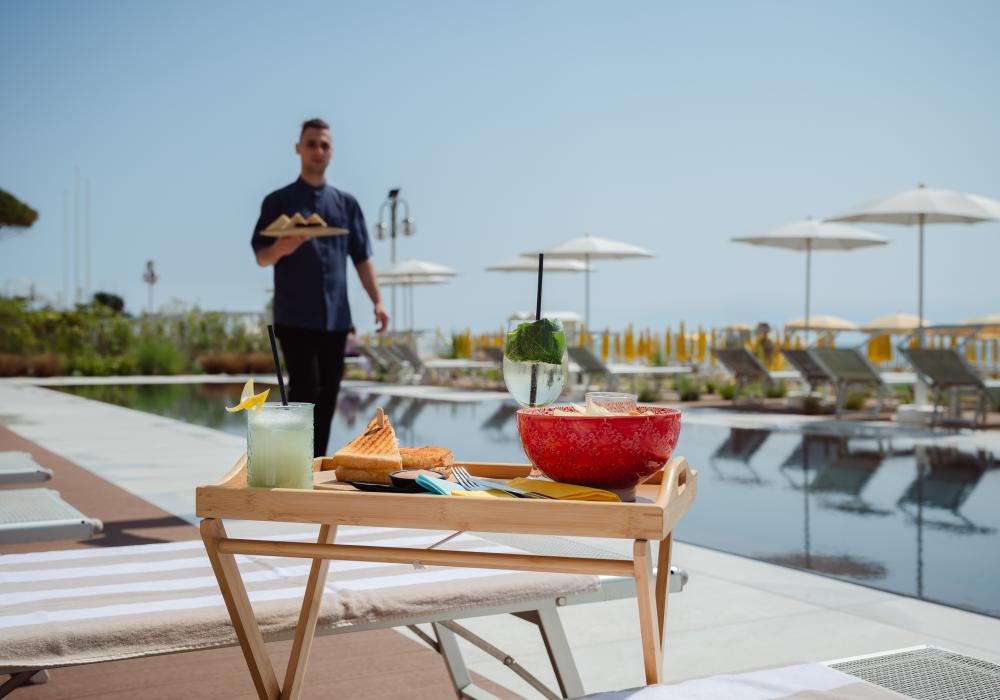 Since hunger and thirst never arrive at the same time, from 9.00 am to 11.00 pm (snack service from 12.30 to 19.00), on the seafront terrace of the pool of the Hotel Las Vegas, the inviting Snack Bar is the perfect setting in which to take a break from the sun and the many activities.