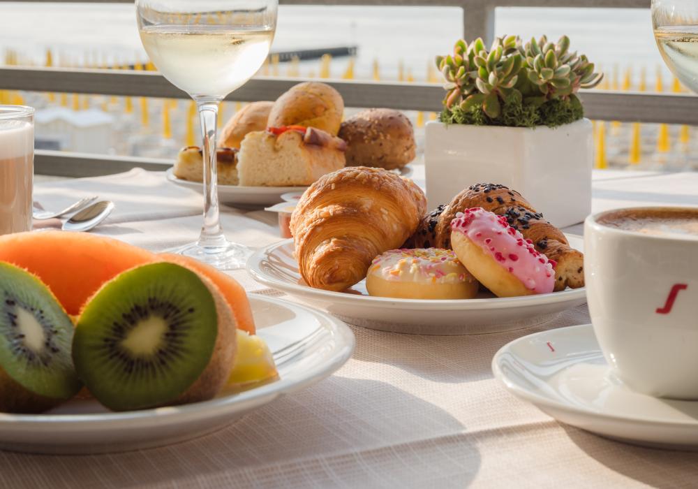 From 7.30am until 11.00am, served in the Breakfast hall, you will be able to taste our rich and delicious breakfast buffet with both hot and cold sweet and savory dishes, along with coffee, freshly squeezed juices, fruit juices and...the smiling faces of Maitre Graziano and his staff, always at Your disposal!